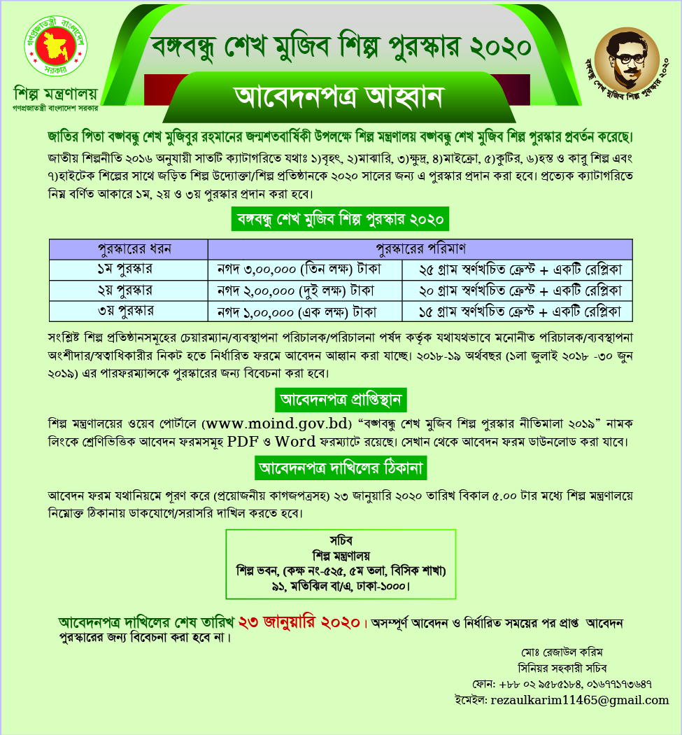বঙ্গবন্ধু শেখ মুজিব শিল্প পুরস্কার -২০২০